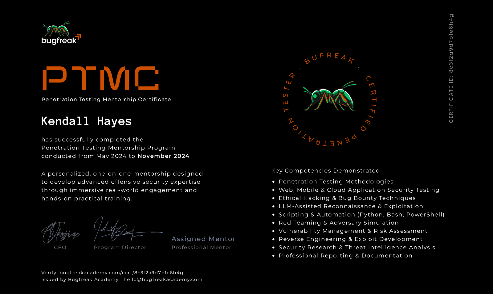 We brought in two people from this mentorship program, and it was immediately clear that Bugfreak builds professionals who think independently and handle real-world challenges. They come equipped with the skills and experience that elevate our team.