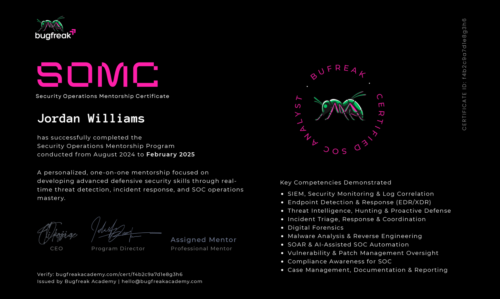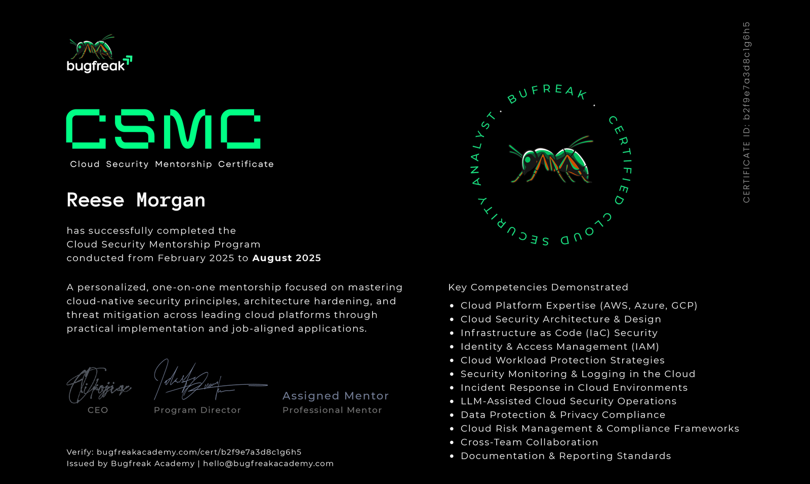 It’s hard to find cybersecurity experts who are not only technically strong but also adaptable and professional. Every graduate we’ve worked with from this mentorship has been grounded, prepared, and easy to integrate into a team.